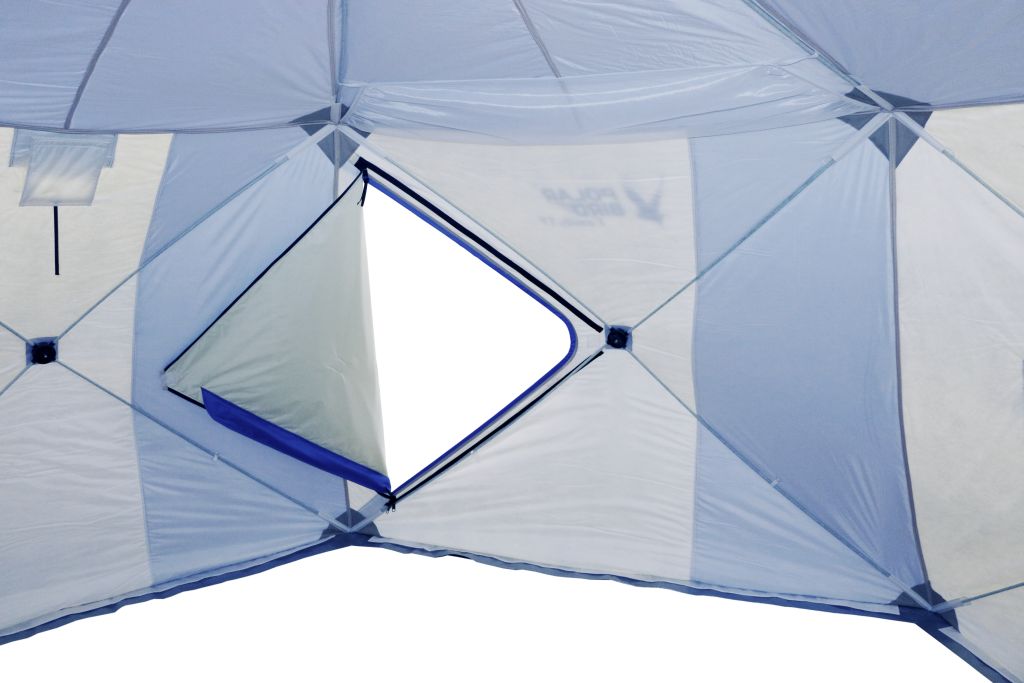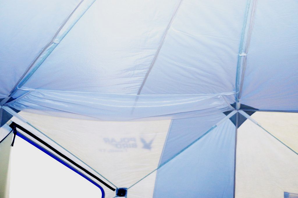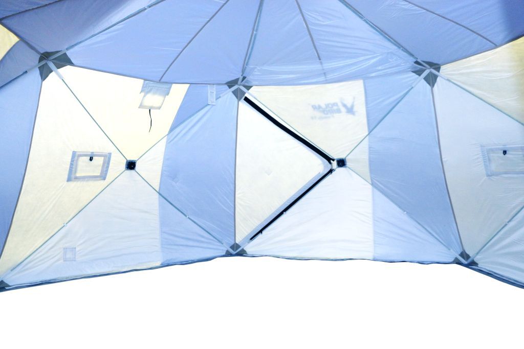 Палатки "Polar bird" оснащены двойной внутренней юбкой, с липучками на верхней юбке для удобной и быстрой установки утепленного пола. Наши палатки можно дополнительно укомплектовать утепленным полом из материала ЭВА нашего производства. Двойная внутренняя юбка и пол надежно защищает внутреннее пространство палатки от поддувания даже, если нечем присыпать внешнюю юбку. Создавая домашний уют и защищая от холода снизу, при соответствующем отоплении рыбачить в палатке можно в домашних тапочках, даже в сильны мороз. Надежное крепление пола к палатке делают их единым целым, и позволяют перемещать палатку по льду не складывая ее и не вынимая снаряжение.