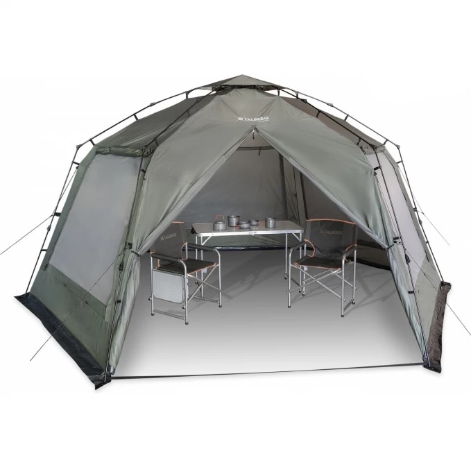 Самый большой четырехгранный кемпинговый шатер с полуавтоматическим каркасом Talberg Anapurna Auto, это отличный вариант для всех любителей кемпингового отдыха. Простая и быстрая установка, благодаря конструкции шатра Вы можете установить его буквально в течение 3-5 минут. Шатер имеет идеальное соотношение объем-вес и удобную сумку для переноски.