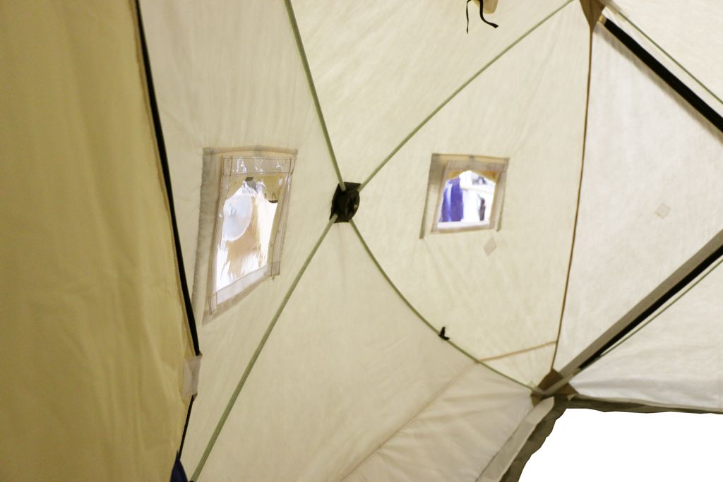 - Каждая палатка оснащена вентиляционными окнами и клапанами приточной вентиляции.