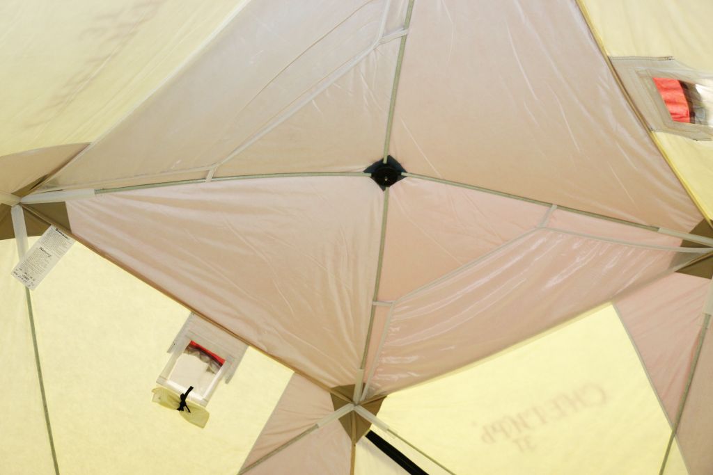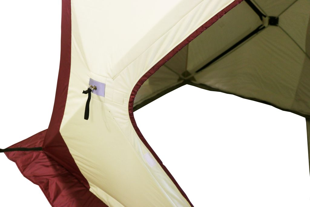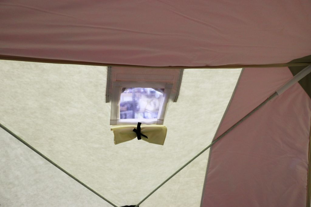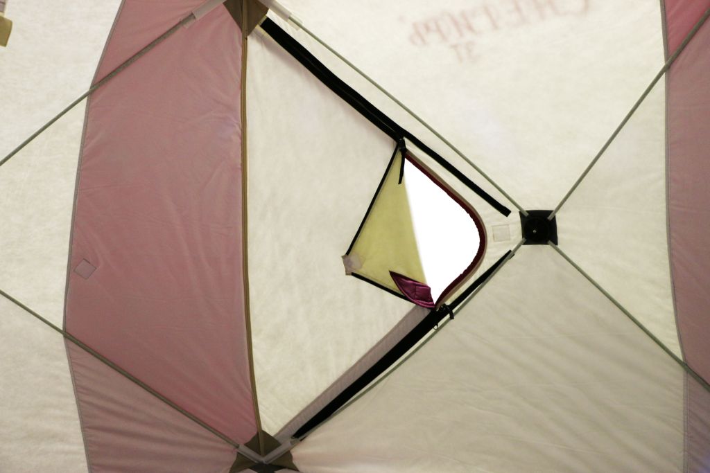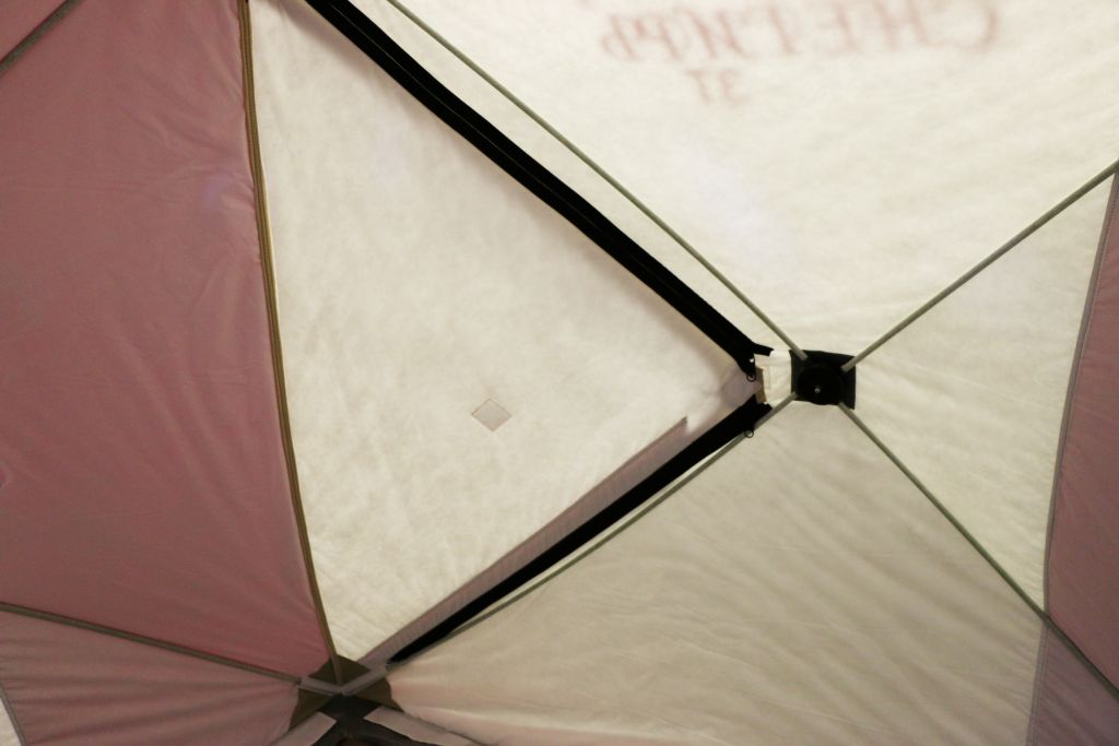 Светлая ткань внутри палатки создает комфортные условия для рыбалки, теперь можно обойтись минимальным освещением. |