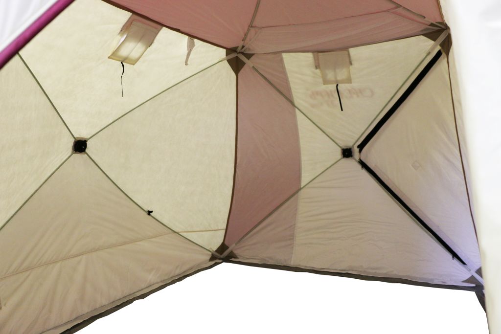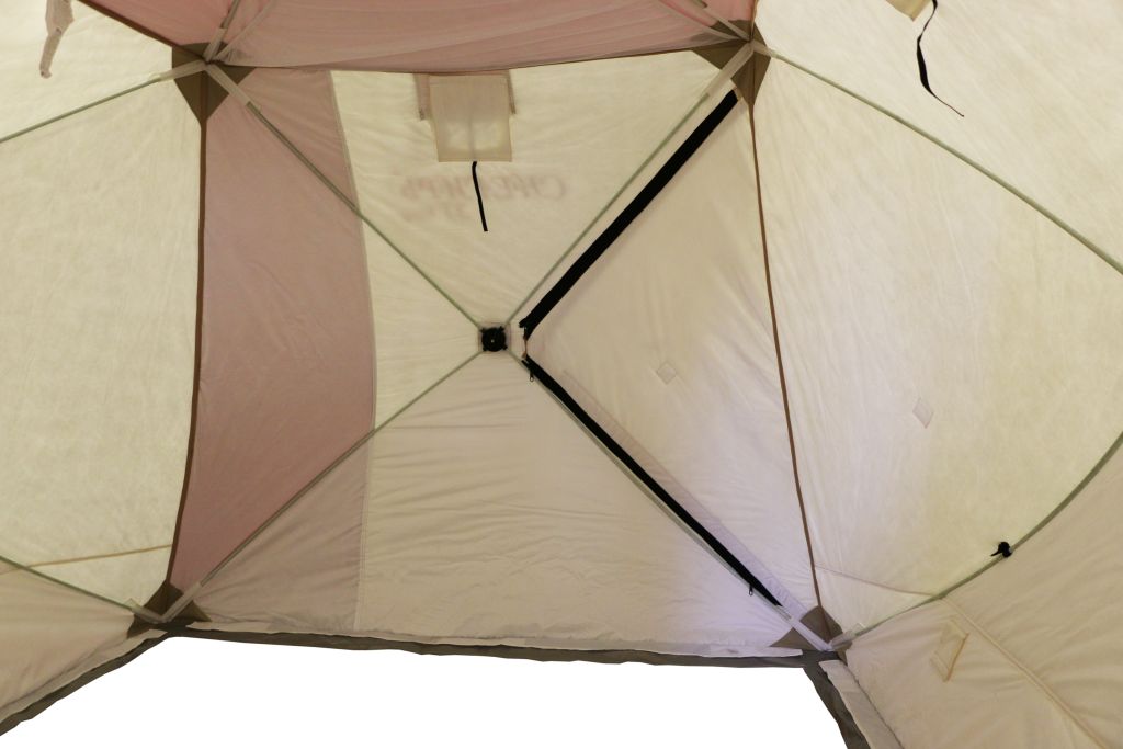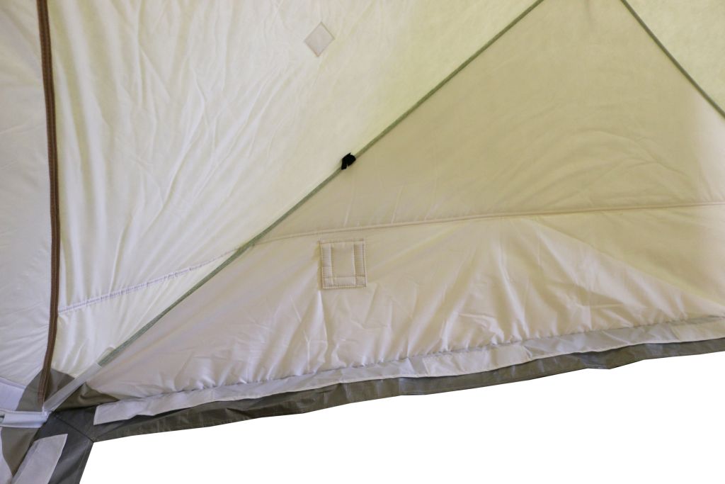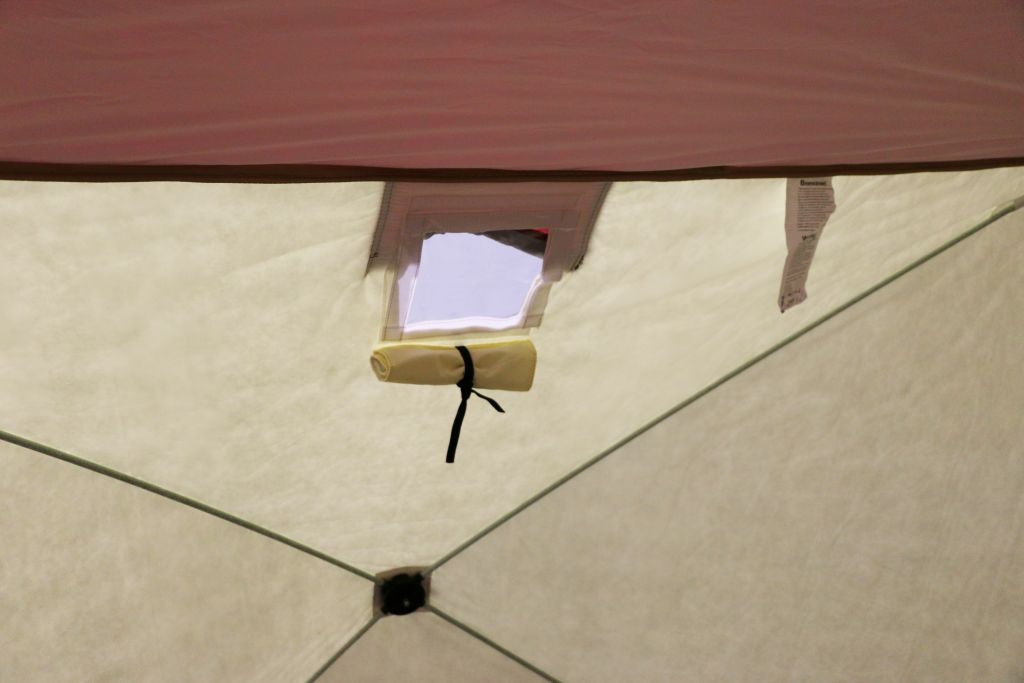 Светлая ткань внутри палатки создает комфортные условия для рыбалки, теперь можно обойтись минимальным освещением. |