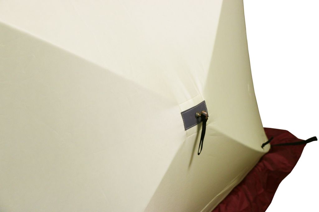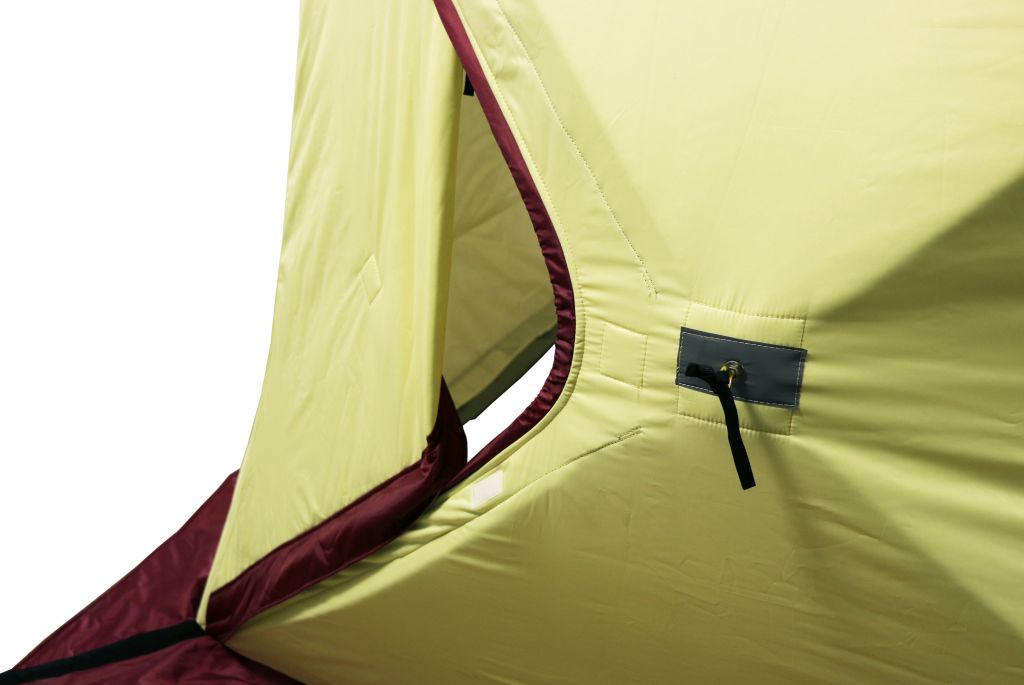 Тент состоит из трех слоев: внутренний слой из прочной светлой ткани Oxford 240 D 1000 PU склеен со слоем утеплителя из синтепона 150 гр/м2 по всей площади, который в свою очередь также склеен с внешним слоем из ткани Oxford 240 D 1000 PU. Такая конструкция тента (без термостежки) исключает мостики холода и делает тент наших палаток исключительно теплым. |