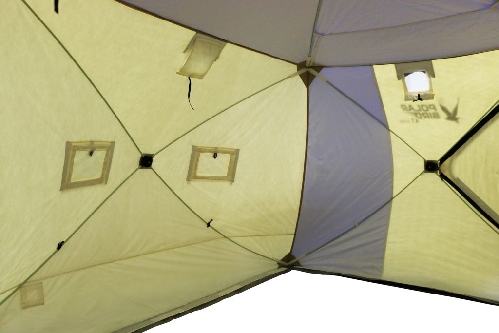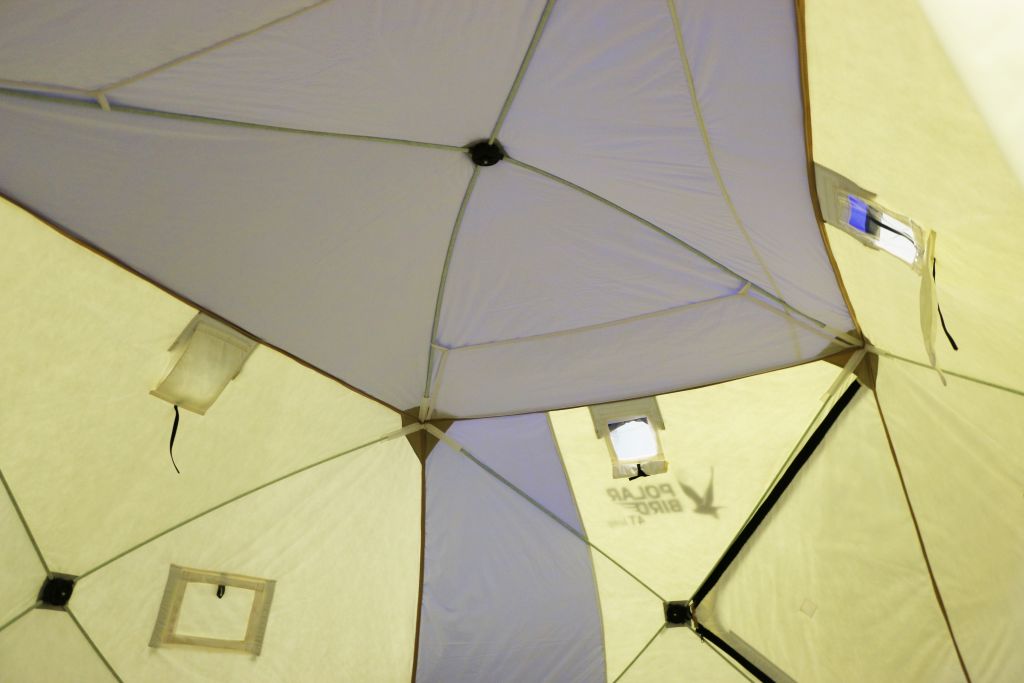 Светлая ткань внутри палатки создает комфортные условия для рыбалки, теперь можно обойтись минимальным освещением. |