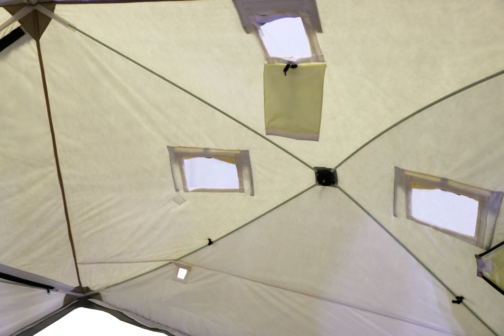 - Каждая палатка оснащена вентиляционными окнами и клапанами приточной вентиляции.